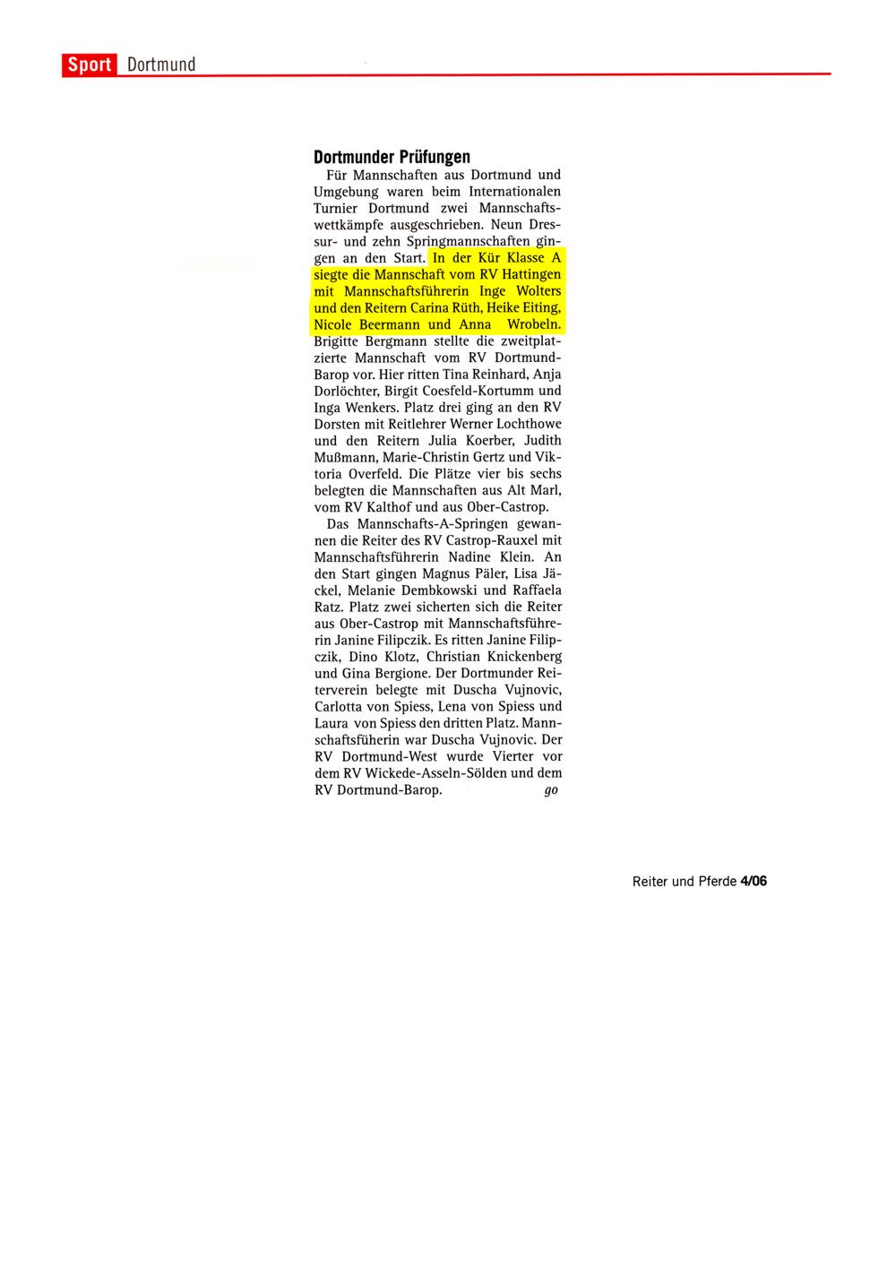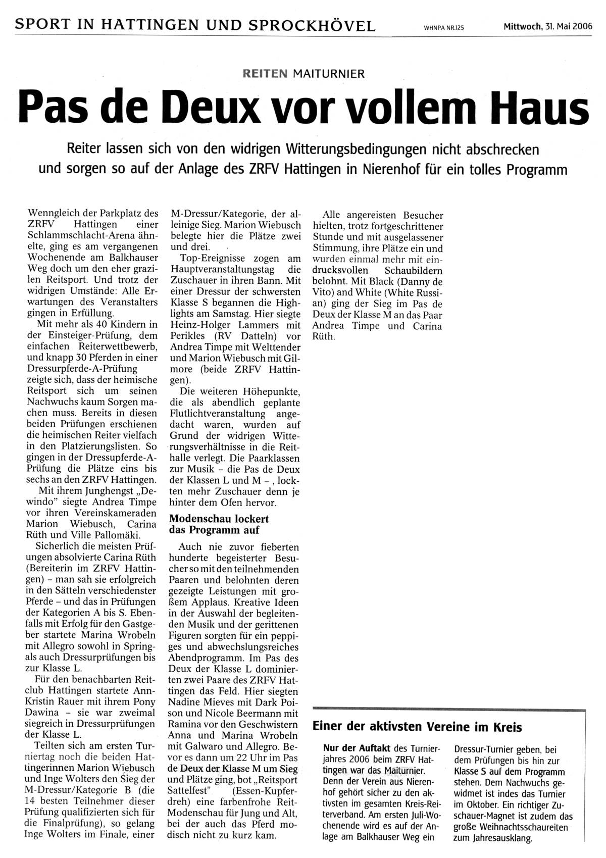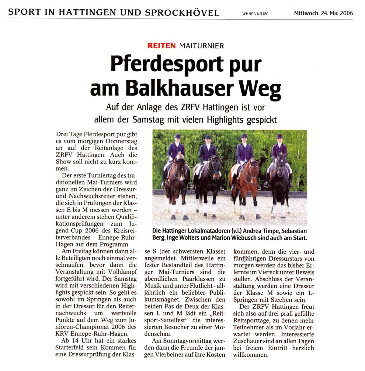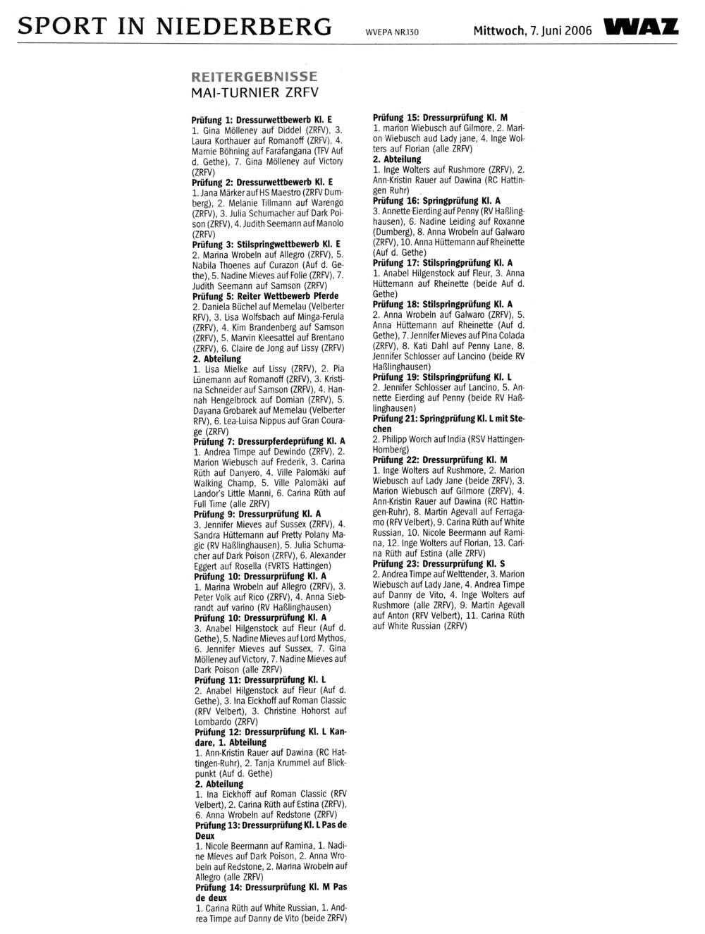 Reitergebnisse Mai-Turnier